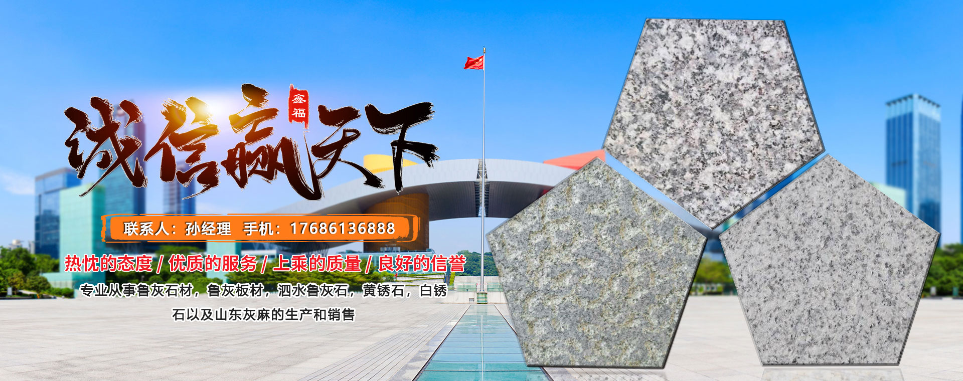 泗水縣鑫福石材廠(chǎng)專(zhuān)業(yè)從事魯灰石材,魯灰板材,泗水魯灰石,黃銹石,白銹石以及山東灰麻的生產(chǎn)和銷(xiāo)售。本公司從原材料進(jìn)廠(chǎng)經(jīng)大鋸粗加工出毛坯,再由切邊機(jī)加工至成品,其每個(gè)環(huán)節(jié)都有專(zhuān)業(yè)的質(zhì)檢員負(fù)責(zé)。本公司注重每一個(gè)生產(chǎn)環(huán)節(jié),追求每一塊出廠(chǎng)的產(chǎn)品都是精品。公司主要生產(chǎn)魯灰、魯灰荒料、光板、窗臺(tái)板、火燒板、樓梯踏步、機(jī)刨石、蘑菇石、路沿石 、盲道石等異型板材以及石材加工。產(chǎn)品美觀(guān),工藝精湛,交期準(zhǔn)確,價(jià)格合理 ,以好的質(zhì)量為美化城市提供優(yōu)質(zhì)價(jià)廉的產(chǎn)品。公司奉行“質(zhì)量?jī)?yōu)異、信譽(yù)企業(yè)”的宗旨, 近年來(lái)公司與國(guó)內(nèi)城建商合作建造了諸多大型建筑、石材工程遍及各地......
